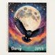 Eine prächtige Eule fliegt mit Flügeln, die unter Vollmond auf diesem schönen, fantasievollen Planer verstreut sind. Ideal für jeden, der Vögel, Eulen und Fantasie Liebe.