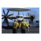 Flugdeck-Regisseure beobachten, wie Piloten eines E-2C Hawkeye ihre Motoren mit Flugzeugen starten.