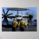 Flugdeck-Regisseure beobachten, wie Piloten eines E-2C Hawkeye ihre Motoren mit Flugzeugen starten.
