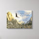 Jesaja Kapitel 40 Vers 31: Aber diejenigen, die auf den Herrn warten, werden ihre Kraft erneuern; sie werden sich wie Adler mit Flügeln erheben; sie werden laufen und nicht müde sein; und sie werden laufen und nicht ohnmächtig sein. Schrift Vers aus dem Buch des Alten Testaments vom Propheten Jesaja, die Ermutigung zu denen, die an Gott glauben und ihm vertrauen. Bald Adler in Flug über zerklüftete Berggipfel und See, mit Bibelgang Passage. Vom Christlichen Faith Gift Shop.
