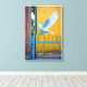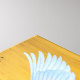 Eine strahlend weiße Taube breitet ihre Flügel vor einem kühnen gelben und blauen Hintergrund aus und symbolisiert Frieden, Hoffnung und Neuanfänge. Der auffallende Kontrast der Farben unterstreicht die Reinheit der Taube und schafft eine kraftvolle visuelle Botschaft von Harmonie, die über die alltägliche Umgebung hinausragt.