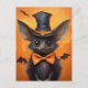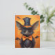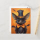 Dieses spielerische Halloween-Fledermausdesign besticht durch einen hohen spitzen Hut, weite Ohren, eine orangefarbene Krawatte und winzige Flügel auf einem hellorangen Hintergrund. Ein skurriler und unheimlicher Charakter, der perfekt für Halloween-Dekor, Schneckenpost oder das saisonale Sammeln geeignet ist.