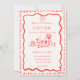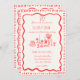 Diese trendige handgezeichnete illustrierte Hochzeitseinladung enthält ein Drehbug- und Abendtischelement. Das skurrile und sonderbare Design beinhaltet handgeschriebenen Schriftart und Festdoodles. Rot und Beije Stil für klassische und moderne Hochzeitsfeste.