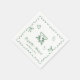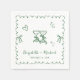 Retro-inspirierte Hochzeitsnapkins für Ihre Verlobungsfeier, Probe Dinner, Empfang und andere Hochzeitsveranstaltungen mit einem trendigen, grünen, gewellten Rahmen, der mit Kakaobögen verziert ist, skurrile handgezeichnete Illustrationen eines Herzens, von Sternen und Weingläsern und die Namen von Braut und Bräutigam in einer spielerischen grünen Schrift.