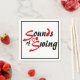 Packung mit 50 Cocktail-Servietten aus weißem Papier mit einem Bild der Phrase "Sounds of Swing" in schwarz und rot stilisierten Schriften. Schwarze Grenze. Siehe dazu passende Stoffserviette, Küchentücher, Tischset, Tischset und Untersetzer. Sehen Sie sich die gesamte Patriotic 40s Napkin Kollektion im FUTTER/BEV an | Wäsche.