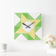Ein Quilt-Blockmuster in sanften Farben wie grün, pfirsichfarben und weiß weist die entsprechenden Zahlen auf, die jede Viertelstunde markiert werden. Dieses Design ist nur für die Quadrat-Uhren geeignet.