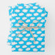 Ein sich wiederholendes Muster, bestehend aus kleinen flauschigen Cartoon-Wolken auf einem blauen Himmel.