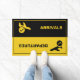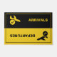 Flughafen Ankunft Abfahrt Türmatte. Eine schwarz-gelbe Tür für jeden Fan, Pilot, Flugbegleiter, Flugzeug-Spotter oder Flughafenangestellten.