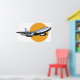 Ein Flugzeug, das gegen eine orange Sonne fliegt. Dieses Design sieht wirklich effektiv aus auf diesem Poster