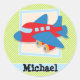 Flugzeug auf den grünen und weißen Streifen Runder Aufkleber