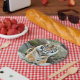 Flugzeug aus Papier. Foto tiger 04. Papierplatte Pappteller