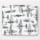 Zeichnungen der schwarz-grauen Flugzeuglinie, überlappend und aus verschiedenen Winkeln, auf weißem Hintergrund. Ein perfektes Geschenk für den Vatertag oder andere besondere Anlass.