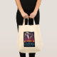 Flugzeug, das über das Suchscheinplakat fliegt Tragetasche