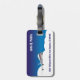 Ein Gepäckanhänger zeigt ein Flugzeug in den Wolken mit blauem Himmel.