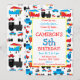 Eine lustige Geburtstagseinladung für jeden kleinen Typ (oder Gal), der Flugzeug, Züge und Autos Lieben.