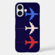 Blau-, Weiß- und Rote Flugzeug, die auf gepunkteten Wegen ausgerichtet sind