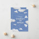 Dieses lustige Papier-Geburtstagsgeschenk-Einladungskarte für einen angehenden Luftfahrtingenieur beinhaltet verschiedene illustrierte gefaltete Weißpapierflugzeuge mit skurrilen, spitzen Flugstrecken zwischen puffweißen Wolken auf einem individuell anpassbaren blauen Hintergrund - personalisieren Sie mit Ihren Party-Details - von katz_d_zynes