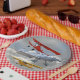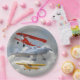 Bunte Flugzeuge, die in einen bewölkten Himmel fliegen.