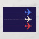 Blau-, Weiß- und Rote Flugzeug, die auf gepunkteten Wegen ausgerichtet sind