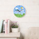 Eine entzückende Wanduhr mit niedlichem lila und blauem Flugzeug für einen Jungen. Es ist eine große Geschenkidee. Einige Grafiken durch Prettygrafik entwerfen am Speicher etsy.com