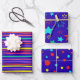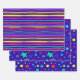 Fluor Bright Stars Streifen und Punkte Spaß Geschenkpapier Set