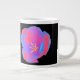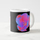Diese phantastische Tasse zeigt ein schönes Tulpenfoto. Das Foto wurde künstlich gefärbt, was zu einer fluoreszierenden Tulpe führte. Die Blütenblätter sind in Blau- und Rottönen gehalten, die inneren Blätter in Rosa und lila. Der Mittelpunkt der Blume ist hellgelb. Der schwarze Hintergrund zeigt die atemberaubende Schönheit dieser Blume.