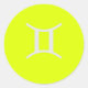 Rundaufkleber mit fluoreszierendem, gelbem massiven Hintergrund und hellgrau zodiakischem Symbol des Gemini. Einfaches und trendiges Design von Alma Wad . Verkauf pro Blatt von 20 .