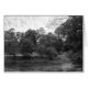 Ein BW DSLR-Foto des Taff mit den Bäumen entlang seiner Ufer an einem August Nachmittag in Bute Park, Cardiff, Wales.