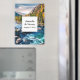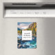 Die Hochzeit bewahrt den Dattelmagneten mit einem landschaftlichen Foto mit Baumbergen im Herbst. Ein lebendiger Fluss fließt um einige Felsen herum.