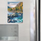 Magnet mit einem landschaftlichen Foto mit Baumbergen in Herbstfarben. Ein lebendiger Fluss fließt um einige Felsen herum.