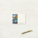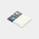 Sticky Notizen mit einem landschaftlichen Foto mit Baumbergen in Herbstfarben. Ein Fluss fließt um Felsen. Ein großer weißer Vollmond schwebt oben.
