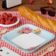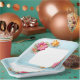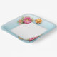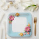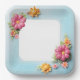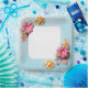 Eine lebendige, blaue Papiertafel mit zarten rosa Blume und üppigen grünen Blätter, perfekt für jeden Anlass.