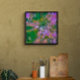 Farbenfrohe Abstraktion in Grün-, lila- und Rosatönen mit orangefarbenen Farbtönen.