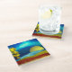 Eine wunderschöne abstrakte Landschaft mit einem einzigartigen Himmel, der an Wellen in flüssigem und mondfarbenem Wasser, Bergen und einem goldenen Baum erinnert.