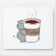 Dieser Entwurf zeigt ein niedliches wunderliches Flusspferd, das eine große Schale Kaffee in seinen Händen hält. Der Kaffee ist das Dämpfen heiß und sagt Kaffee auf der Front der Papierschale. Dieser Entwurf macht ein wunderbares Geschenk für jeden möglichen Kaffeeliebhaber oder Caffeinsüchtigen.
