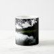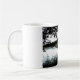 Flussufer mit Bäumen und Foto mit Schilf Kaffeetasse