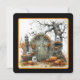 Wreath of Whispers - The Gate That Greets the Dead Halloween Card Ein verwittertes Tor steht mitten in einer Spuk Halloween-Szene, umgeben von strahlenden Jack-o’-Laternen mit schelhaften und bedrohlichen Ausdrücken. Geisterfiguren treiben leise durch die Luft, während Fledermäuse über sich schwingen und eine Laterne in der Nähe hängt, was imaginäre Flickers in den Nebel auslöst. Ein Gnadenbaum dehnt seine verwinkelten Gliedmaßen hügelig aus, seine Regale knistern Kürbis und Spirituosen gleichermaßen. Das Ambiente strahlt spektralen Charme aus und ist spielerisch dreckig, sodass Halloween in einem Moment ruhiger Spannung seine unheimliche Eleganz erleben kann.