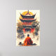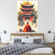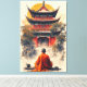 Ein einsamer Mönch, der in lebhaften orangefarbenen Roben aufgetaucht ist, sitzt in tiefer Meditation, bevor ein majestätischer Tempel in goldenem Licht badet. Die große Pagode erhebt sich anmutig in Richtung Himmel, ihre Dächer sind mit sanften Bäumen gerahmt und das warme Sonnenlicht. Die Szene strahlt Stille und Ehrfurcht aus und lädt den Betrachter ein, zu innehalten, zu atmen und in eine Welt zu treten, in der sich die Zeit verlangsamt und der Geist erwacht. Dieses Kunstwerk verbindet Gelassenheit mit architektonischer Pracht und zeichnet das zeitlose Streben nach innerer Ruhe in Harmonie mit dem Heiligen aus.