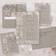 Flüstern von Vintag romantischen Elfenbeinblumen Einladung. Dieses wunderschöne Design zeigt sanfte Elfenbein- und Taupflötennuancen im Hintergrund eines halbtransparenten Unterrichtsbereichs für Ihren personalisierten Text und fügt dieser Einladung eine Touch Vintager Schönheit und Romantik hinzu.
