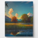 Tauchen Sie ein in die ruhige Schönheit der Natur mit diesem bezaubernden Landschaftsbild. Das goldene Licht zieht sich über blühende Wildblumen, das ruhige Wasser und die mächtigen Berge im Hintergrund, während sanfte Wolken über einen belebten Himmel tanzen. Ideal, um in jedem Raum eine beruhigende und aufregende Atmosphäre zu schaffen. Dieses Stück fasziniert die friedliche Magie der unberührten Momente der Natur.