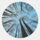 Ein faszinierender Blick nach oben auf alle hohen, blätterlosen Bäume, die sich in Richtung des blass blauen Himmels ragen, eingefangen in einem friedlichen Winterwald. Dieses Bild ruft ein Gefühl des stillen Staunens, der Ruhe und des zeitlosen Rhythmus der Natur hervor. Ideal für Naturliebhaber, Achtsamkeitsthemen und ruhige Wohngestaltung.