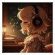 In einem gemütlichen, dümmlich beleuchteten Raum sitzt ein Anime-Mädchen mit Kopfhörern von einem Plattenspieler, der in der Musik verloren geht. Der Nachthimmel, mit Sternen übersät, flüchtige Blicke durch das Fenster, die eine Touch von Geheimnis zu der ruhigen Atmosphäre. Musikalische Noten schweben um sie herum und schaffen eine bezaubernde und introspektive Szene.