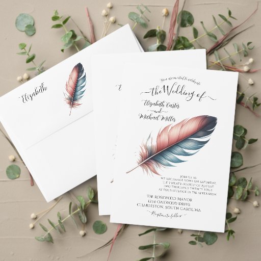 The Whispers of Grace: Feathered Elegance Kollektion ist darauf ausgelegt, die sanfte Schönheit und symbolische Bedeutung von Federn in einem raffinierten, künstlerischen Stil zu erfassen. Mit zarten, fließenden Federbildern in Pastelltönen in Rosa und Blau, ist diese Kollektion ideal für Paare, die ihre Hochzeitskunst gewollt haben, um Eleganz, Freiheit und Leichtigkeit widerzuspiegeln. Jedes Stück ist eine sanfte Darstellung von Anmut und Gelassenheit, ideal um eine beruhigende, romantische Atmosphäre zu schaffen. Von Einladungen und RSVP-Karten bis hin zu Sitzkarten und Gastgeschenke Hochzeiten bieten diese Designs eine subtile und dennoch wirkungsvolle Möglichkeit, Ihrem besonderen Tag eine natürliche Schönheit und eine sanfte, ätherische Touch hinzuzufügen. Personalisieren Sie jeden Gegenstand, um Ihre Hochzeit zu einem echten Spiegelbild Ihrer Liebe zu machen.
