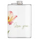 Drei exquisit gerenderte Lilien, deren cremige weiße Blätter sanft mit rosa an den Spitzen erröten, verkörpern eine puristische, sanfte Zuneigung. Die zarte Kunst ruft ein Gefühl von hellen Komfort und zarten Charme hervor, während die eingebettete "Liebe You..." eine herzliche Botschaft verbreitet und dieses Stück zu einer Folge der Verehrung macht.