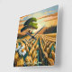 Treten Sie ein in die idyllische Welt des Whisperings Wheat, wo die sonnenverwöhnte Landschaft Sie dazu zwingt, die Flüstern der Natur zu erfassen. Dieses Kunstwerk zeigt eine malerische Szene eines Weizenfeldes, das in der Brise schwingt, während ein majestätischer Baum Schatten und Trost bietet, harmonisch ergänzt durch die Anwesenheit von drei Gängen, eine Ode an die heikle Balance von Leben und Wachstum.