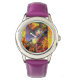 Kinderuhr aus Edelstahluhr mit lila Lederarmband