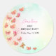 Make your baby girl's celebration a little more magical by using our Flutter Kiss Butterfly 1st Birthday Round Sticker! Ideal for sealing favor bags, envelopes, or party décor, this charming watercolor design has feminine charm and delicate pastel butterflies. A charming and fashionable way to wrap up your first birthday celebration with a butterfly motif.