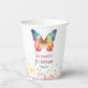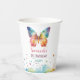 Personalized rainbow butterfly birthday cups featuring a vibrant watercolor butterfly with soft pastel splashes and delicate star accents. Customized with your child’s name and birthday date, these cups add a magical and elegant touch to your celebration table.