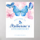Modernes und elegantes Pink Lila Floral und botanisches Butterfly Geburtstagsgeschenk Plakat, flötenfarbener Watercolor auf Schmetterlingsthemen Geburtstagsgeschenk Dekoration. Niedlich und hübsch. Dieses Begrüßungsschild mit einem floralen, wasserfarbenen Hintergrund mit Schmetterlingen in blauer Farbe macht es weich, aber modern.