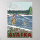 Fly Fisherman - Denali Nationalpark, Alaska - Vintage Travel Poster wurde im Jahr 2007 gegründet. Dieses Bild zeigt Szenen aus dem Nationalpark Denali, AK.